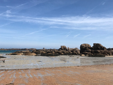 We explored the local area on foot walking along the coast and admiring the wonderful views. Known as Cote de Granit Rose, the pink glittery hue of the spectacular rock formations are unique and it appears as though this marvellous stone is also used for building houses, pavements, walls, mini golf courses in fact everywhere you look you will see it, including out to sea where wonderful formations appear as the tide recedes.